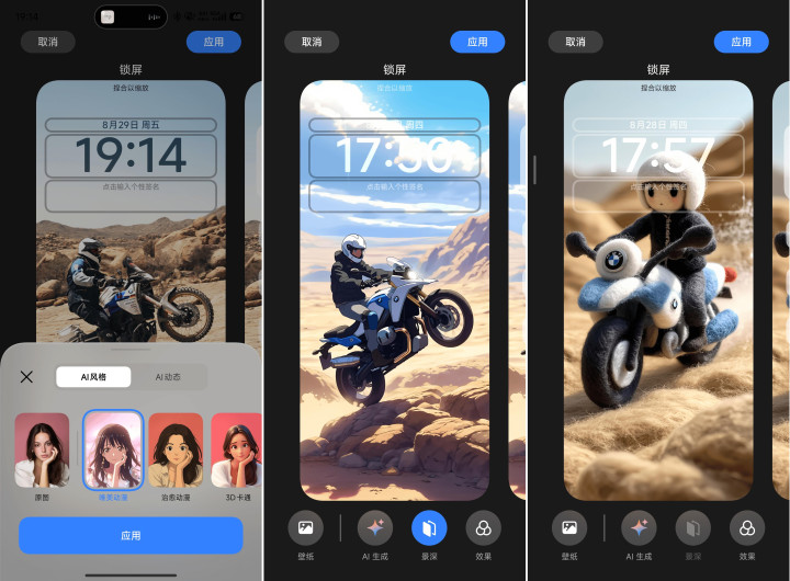 如果说之前的澎湃OS 2只是单纯地在静态壁纸中加入一些动画效果,那么澎湃OS 3就能让用户自主选择视频的风格,再加上各种特效调节,只要你有足够的耐心,大概率这辈子都遇不到第二个跟你撞锁屏的人。