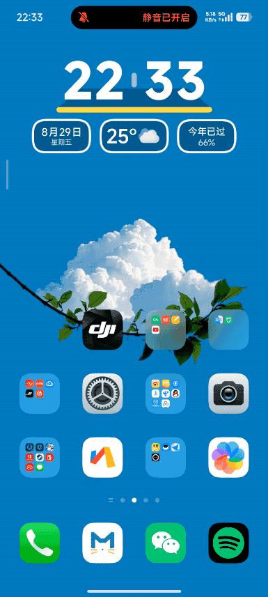 不过在桌面布局方面,澎湃OS 3做了一些细节调整,之前的澎湃OS 2总给小雷一种所有应用程序都「挤在」一起的感觉,完全没有把桌面空白部分利用起来的感觉。