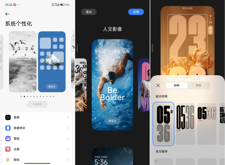 先从大的说起,澎湃OS 3新增了不少锁屏样式,且每个锁屏样式可自定义的选项更多,例如日历、时钟、天气、字体、景深等等等等。